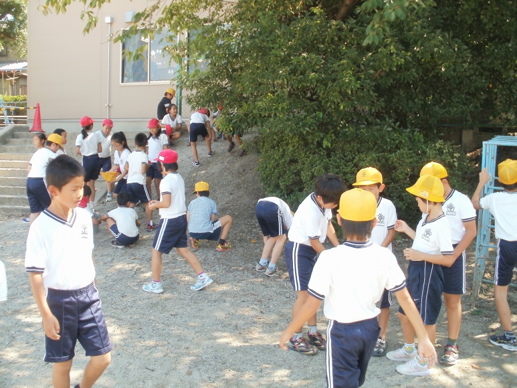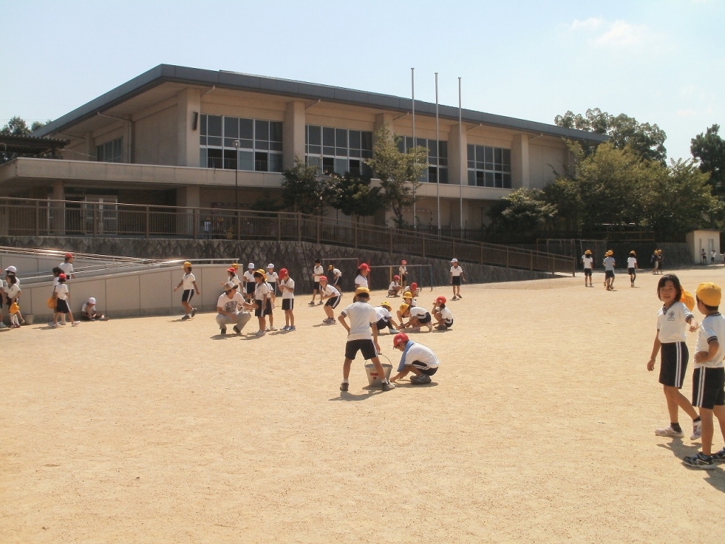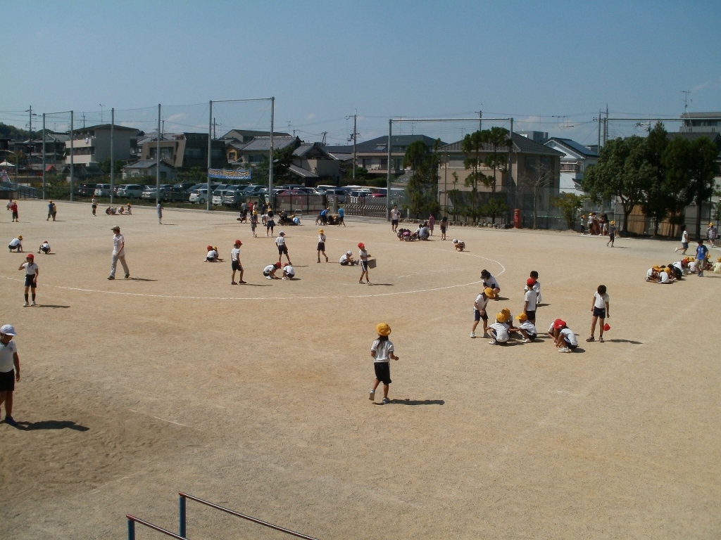 今日は運動会に向けて全校のみんなで掃除の時間に運動場に転がっている石拾いをしてました。ちょっとのぞいてみましょう。