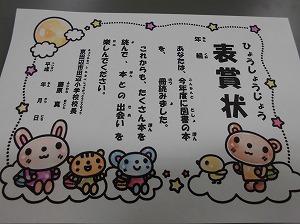今年度、本をたくさん読んだ児童へ校長先生より表彰状が贈られました。