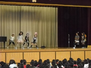 前期のクラブ活動の成果を発表しました。ダンスもまじえ、全身を使って表現する様子に全校の子どもたちも見入っていました。