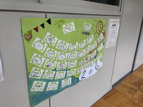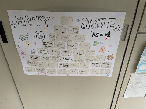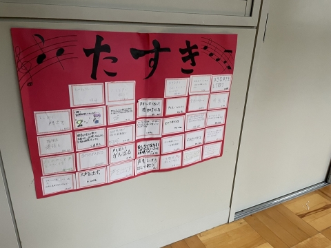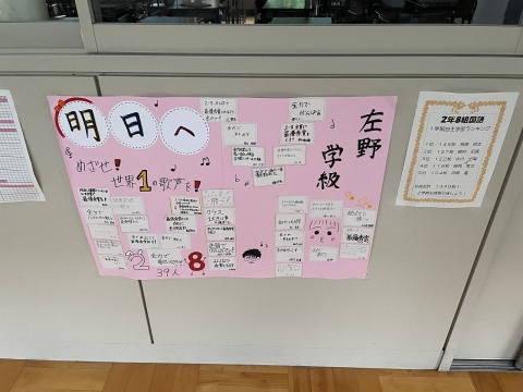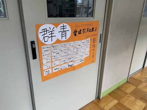 2年生では、合唱コンクールに向けての意気込みをブロックのカラーに合わせて書いていました。