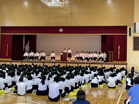 また、生徒指導主任の四方路先生からは、交通安全に注意し「命を大切に」、「思いやりを持って」他者と関わること、そして「よっしゃ!」とガッツポーズが出る場面を作りましょうということをお話されました。