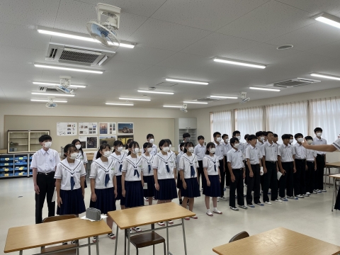 また、生徒指導主任の四方路先生からは、交通安全に注意し「命を大切に」、「思いやりを持って」他者と関わること、そして「よっしゃ!」とガッツポーズが出る場面を作りましょうということをお話されました。