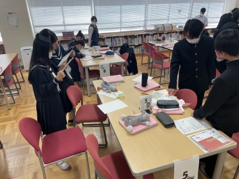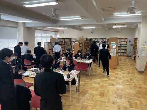 今度、国語科の単元で調べ学習をするということで、遅くなりましたがオリエンテーションを行いました。たくさん本を読む生徒は何度も足を運んでいるかもしれませんが、なかなかいかない生徒にとっては、図書室の中の様子をじっくりと見ること自体が初めてだったかもしれませんね。