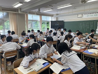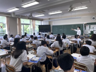 教育実習生が1年生にも入っているので、3学級で授業を行いました。
