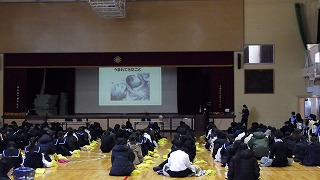 生命のはじまり、出産の様子、子育て経験者の話、妊婦エプロンをつけての妊婦体験、赤ちゃんの抱き方体験など盛りだくさんの内容でした。将来親となる中学生たちが、生命の素晴らしさや子育てに関する理解と関心を持ち、今後の自分の生き方を考える機会になりました。