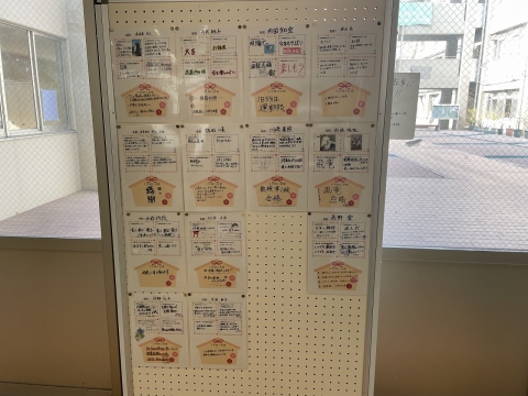 昇降口入ってすぐのところには、2年生の担当の先生の絵馬がありました。