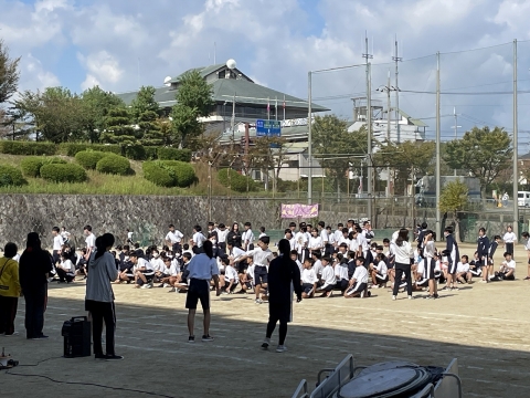 最後に「全員リレー」を走っていました。白熱の戦いでした。バトンを落としたり、バトンパスがうまくいかなかったり、相手が見つからなかったり…。改善点を見つけて本番までに調整してください。