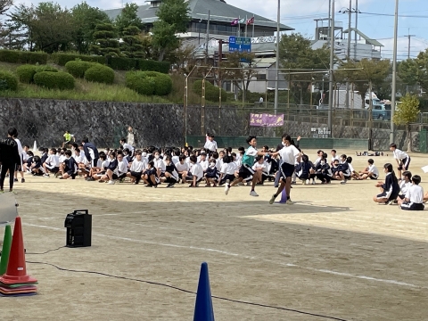 今週水曜日に行われる体育大会に向けて、本日学年リハーサルを2年生、1年生の順で行いました。(3年生は水曜日の5,6時間目)