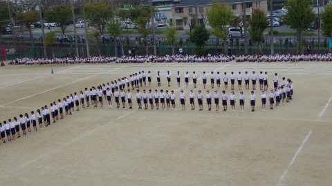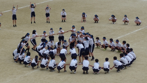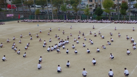 午後から行われた創作集団演技はいかかだったでしょうか。この創作集団演技は、3年生がリーダーを中心に構成をすべて考えています。基本の集団行動+創作演技は、難しすぎても全体で合わせにくくなるし、簡単すぎても見栄えがしないし、という超難関課題です。どちらにせよ、短い時間の3学年での練習時間なので、3年生のあーでもない、こーでもない…試行錯誤の末の演技でした。