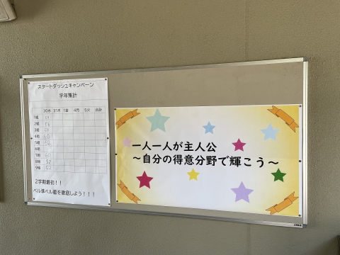 1年生では、スタートダッシュキャンペーンとして、ベル着ベル準の声掛けをリーダー中心にしています。