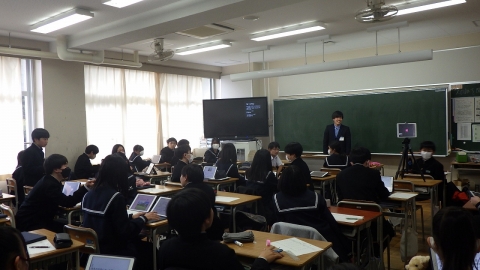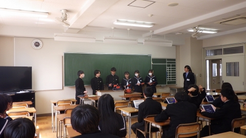 各クラスの優秀作品を全体で発表し、その中身をお互いに評価し合いました。