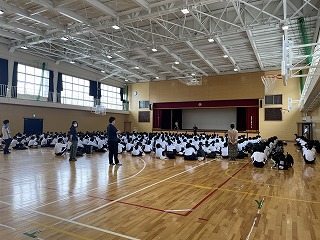 久しぶりに全員が体育館に集まり修了式を行いました。