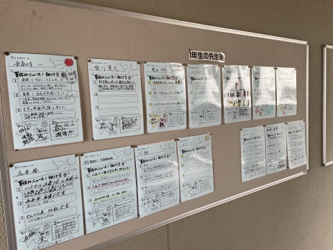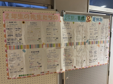 1,2年生は先生たちの2学期の目標や夏休みの思い出など、学級の掲示と同じようなものを掲示しています。