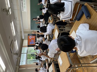 本日は全学年そろっての授業でした。本日から昼食が始まりました。新入生にとっては、中学校初めてのお弁当。緊張が続く中でのお弁当は、特別においしかったのではないでしょうか。2,3年生も久しぶりのお弁当。中学生にとってのお弁当はほっと一息つける大切な時間です。朝からお弁当作りは本当に大変ですが、生徒たちの成長のためにご協力お願いします。