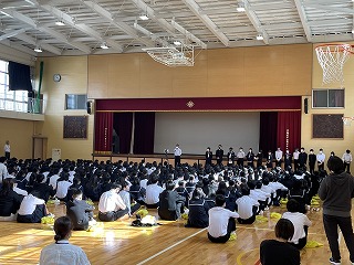 また、生徒指導主任の四方路先生からは、交通安全に注意し「命を大切に」、「思いやりを持って」他者と関わること、そして「よっしゃ!」とガッツポーズが出る場面を作りましょうということをお話されました。