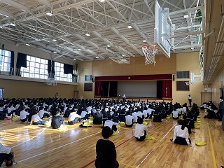 久しぶりに全員が体育館に集まり修了式を行いました。