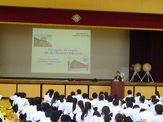 また、生徒指導主任の四方路先生からは、交通安全に注意し「命を大切に」、「思いやりを持って」他者と関わること、そして「よっしゃ!」とガッツポーズが出る場面を作りましょうということをお話されました。