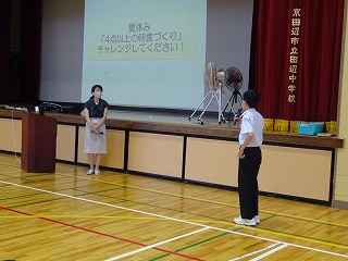 2年生には夏休みに自分の朝食を見直す機会として栄養バランス評価チェックシートに入力をしていってもらいます。体づくりの基本なので頑張って挑戦してください。
