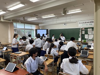 また、生徒指導主任の四方路先生からは、交通安全に注意し「命を大切に」、「思いやりを持って」他者と関わること、そして「よっしゃ!」とガッツポーズが出る場面を作りましょうということをお話されました。