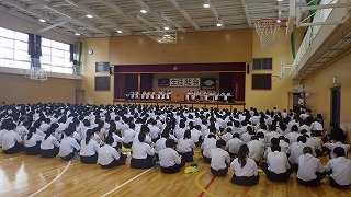 久しぶりに全員が体育館に集まり修了式を行いました。