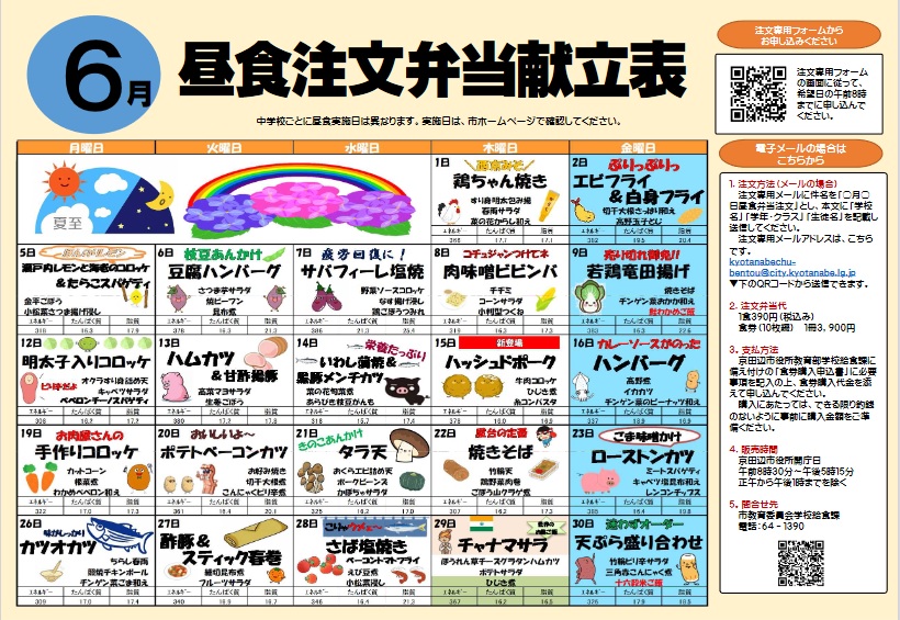 (田辺中学校では、注文弁当システムを導入しています。市役所で食券を購入していただく必要がありますが、温かいお弁当が届きますので、お忙しいときなどぜひご利用ください。)