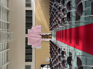 生徒数の増加により、全学年で新入生をお迎えすることはできませんので、前日に心をこめて準備をしていました。3年生は体育館の準備を、2年生は教室整備を行いました。体育館の後ろに貼られていた桜。いかがでしたか。これからの中学校生活が桜のように満開になることを願っています。