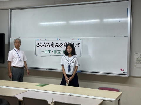 結果は出ましたが、本番に向けて取り組んだ姿勢や、努力を重ねたことは結果によって変わるものではありません。つけた力をしっかりと次に生かしてください。次は1か月後の体育大会です。3年生は自分のクラスだけでなく、後輩たちをしっかりと引っ張っていく全体のリーダーとして活躍してもらいます。2年生はその姿をみて、次のリーダーになっていく準備をしなくてはいけません。1年生は、初めての体育大会なので、必死についていってください。その中で楽しさを追求してください。