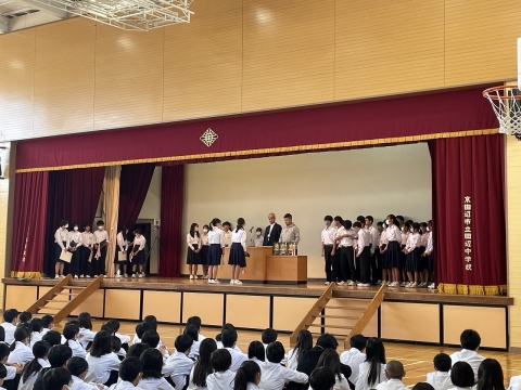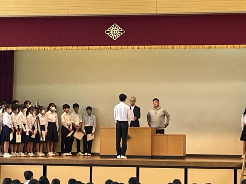 また、生徒指導主任の四方路先生からは、交通安全に注意し「命を大切に」、「思いやりを持って」他者と関わること、そして「よっしゃ!」とガッツポーズが出る場面を作りましょうということをお話されました。