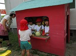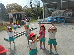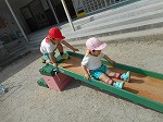 「ジュースどうぞ」「ごはんつくったよ」と、砂場でごちそうを作ってままごと遊びをしたり、「こんなこともできるよ!」と滑り台を滑ったり、曲に合わせて体操をしたりなど、思い思いに好きな遊びを楽しんでいます。
