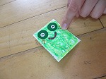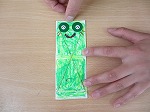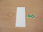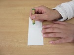 牛乳パックにある切込みに、輪ゴムをかけます。