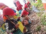 自分で作ったバッグを持って、3歳児みんなでお散歩に行きました。