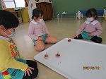 2学期からたくさんこま回しを楽しんできた3歳児さくら組・もも組の子ども達。