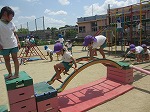 繰り返し遊ぶうちに、「ここまでいけたよ」「もっと難しいコース作ろう」と自信いっぱいの姿を見せ、思い切り体を動かして遊ぶことを楽しみました。