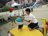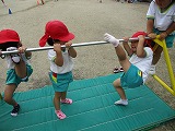 今度は鉄棒!足を掛けたり、先生と一緒にくるっと回ったり、、、