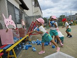 玉投げ遊びでは「うさぎさんおなかすいてるかな?」「えい!」