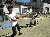綱引きやしっぽとりも楽しみ始めた子どもたち。