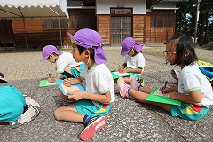 5歳児はそのまま神社にある、燈籠(とうろう)や鳥居、狛犬、ちょうちんなど