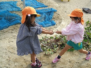 「ツル長いなあ~」「おいもは出来てるんかなあ?」「まだ見えへん!」と言いながら皆で