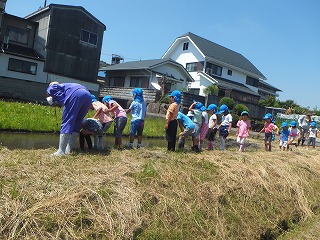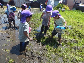 5歳児の子どもたちが、近くの田んぼに遊びに行きました。