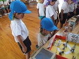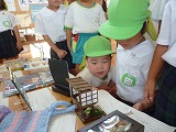 今年も田辺小学校の児童が夏休みに一生懸命作った作品と、田辺幼稚園の子どもたちが、1学期に遊んだ作品を一緒に展示する、幼小合同作品展が小学校体育館で開かれました。