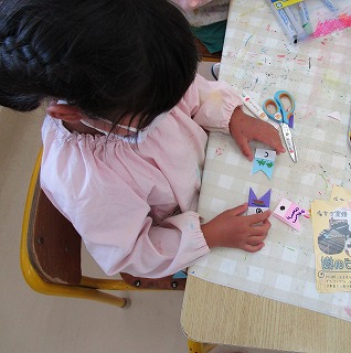 「しっぽはどれぐらい切ろうかな?」「模様は何色で描こうかな?」と、お誕生日の友達のことを思いながら描くことを楽しんでいました。