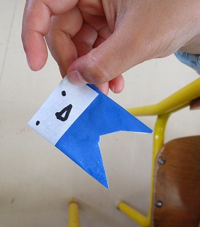 毎日幼稚園で泳いでいるこいのぼりを見ながら、折り紙で作りました。