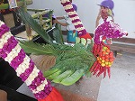 いろいろな色の野菜で作られたおみこしを見て「きれーい」「すすきが鳥のしっぽになってる」とじっくりおみこしを見ていました。