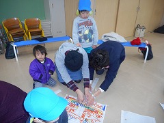 いっぱい走って体も心もぽかぽか♡「楽しかった」「また、お家でお正月にしような」にこにこ笑顔でかえりました。親子のふれあいって大切ですね。子どもたちがとってもいい顔で、うれしかったです。ありがとうございました。
