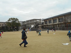 12月18日年長すみれ組は親子でたこあげをしました。
