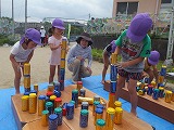 流れるボールで水遊び 缶積み遊び