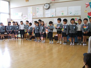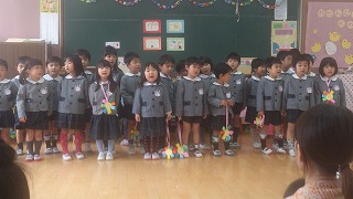 年長児が ♪なかまたちキラキラ の歌をプレゼントしました。