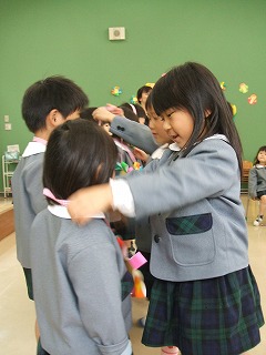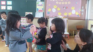 年長児から年中組の新入園児にもペンダントを渡しました。