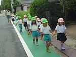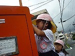 4歳児のお兄さん、お姉さんに手をつないでもらって、幼稚園の近所のポストまで歩きます。