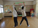 ①上に投げてみよう! ②向かい合って投げてみよう!